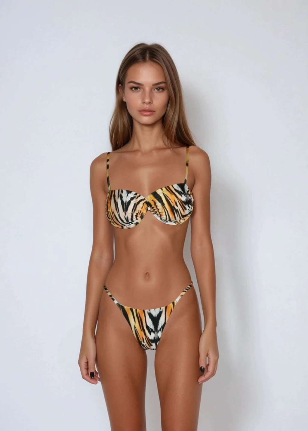 • A modelo mede 1,78 cm e veste P