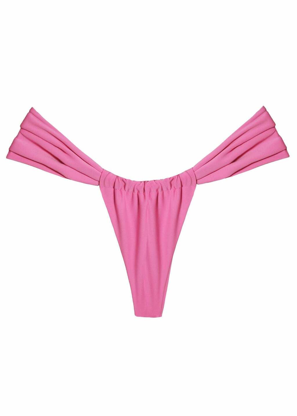 Calcinha de biquíni avulsa com as laterais largas, frente franzida e detalhe de flor removível.