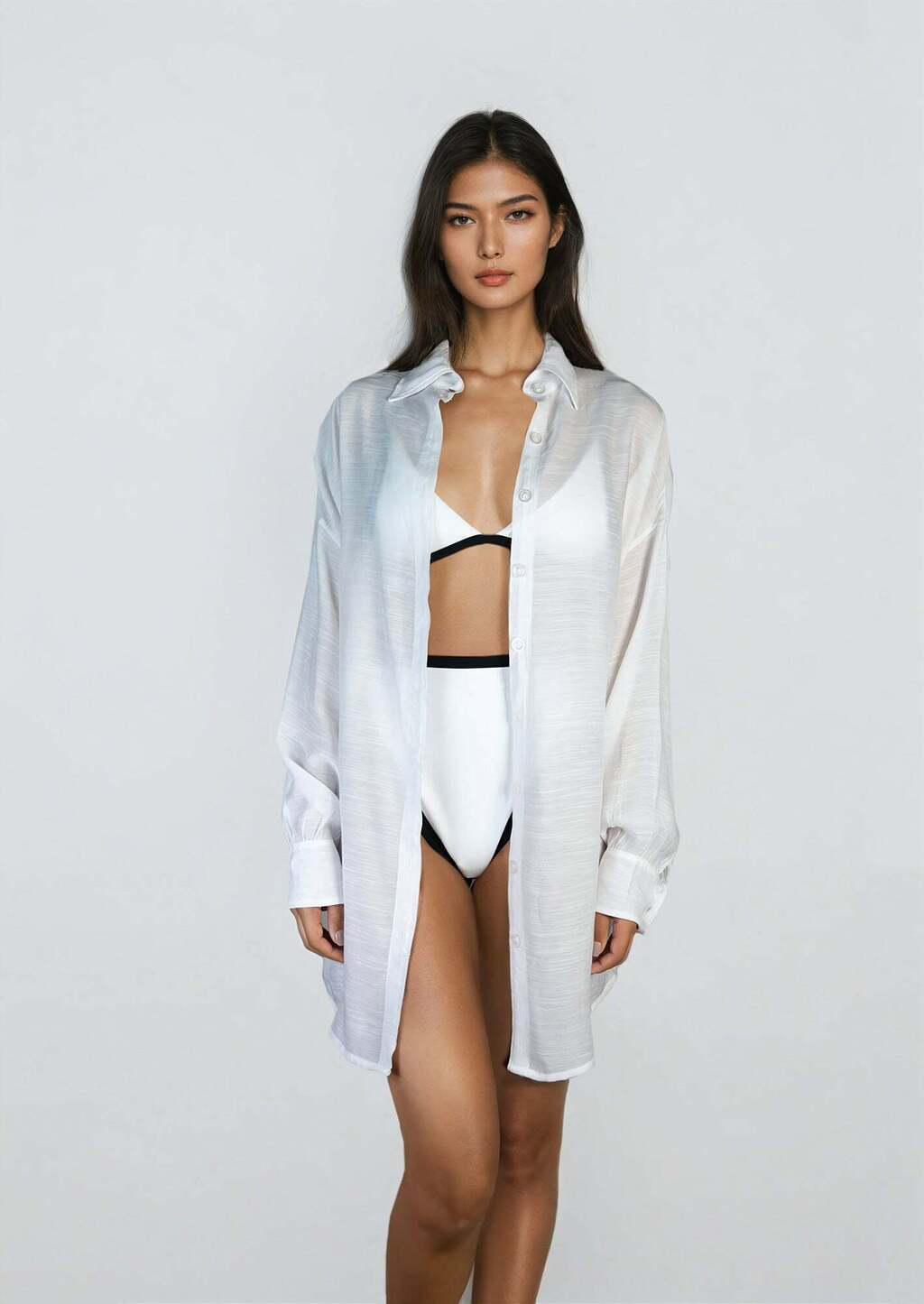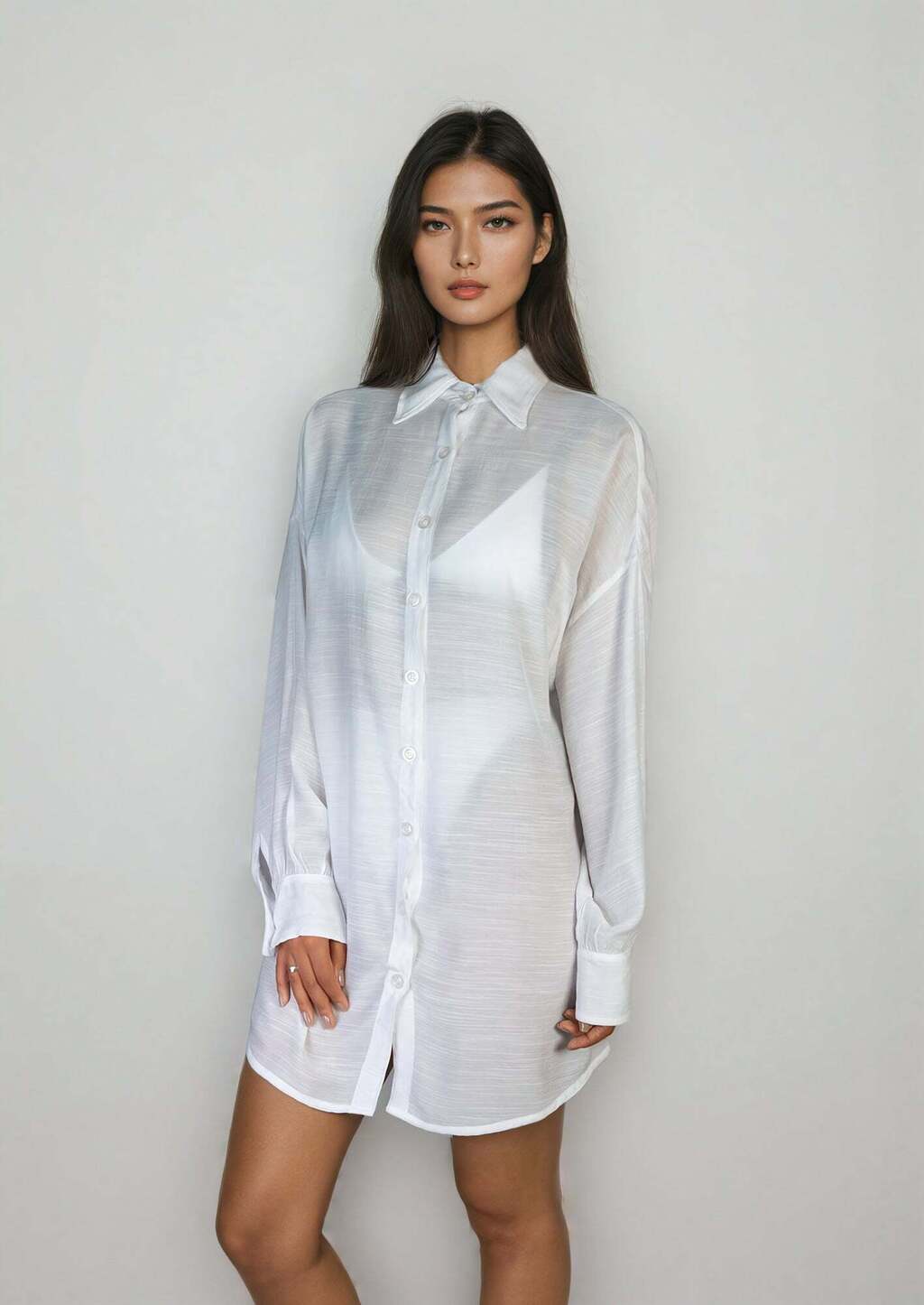 A nossa chemise é um modelo de saída de praia curta, com mangas longas, abotoamento frontal e gola lapela. Uma peça elegante e super atual, confortável e perfeita para os dias de verão. Use e abuse da sua versatilidade, criando looks inspiradores e fashionistas com essa saída clássica.