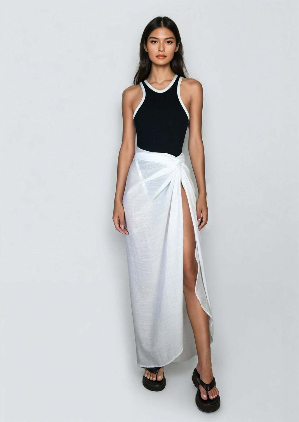 A nossa saia longa em estilo Pareô é uma saída versátil e super feminina.