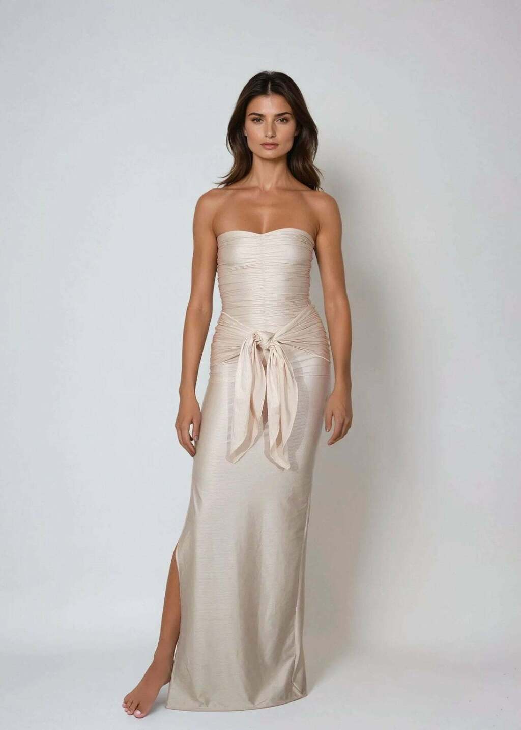 Saia longa com amarração frontal, que modela o corpo. A fenda lateral proporciona um caimento perfeito e maior fluidez, garantindo conforto e movimento. Com baixa compressão e comprimento longo, o modelo valoriza suas curvas com sutileza. Perfeita como saída de praia ou para criar looks sofisticados e cheios de estilo.