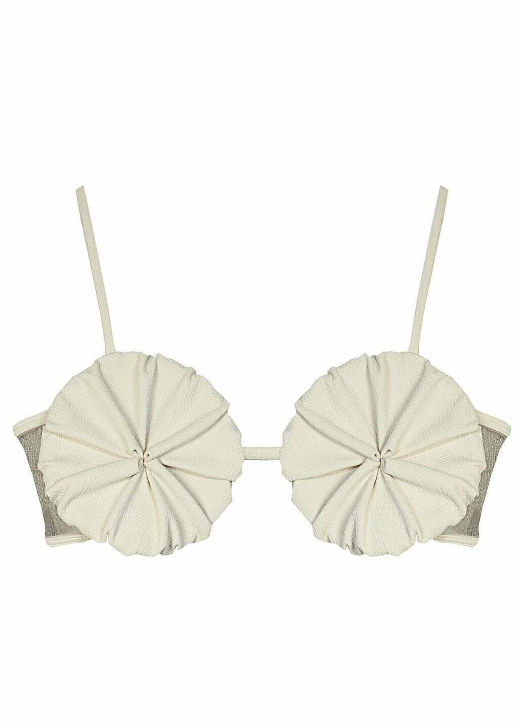 Possui bojo de fuxico, reguladores nas alças, costas em tule e amarração em laço para um ajuste perfeito ao corpo.