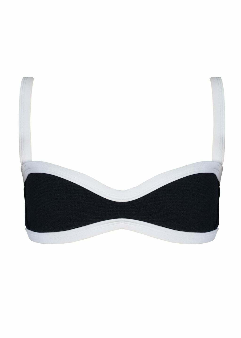 Uma modelagem inspirada nos clássicos tops estilo “faixa”, com viés de sustentação por todas as extremidades que proporciona um encaixe perfeito ao corpo. Possui alças grossas e costas com reguladores banhados a ouro, barbatanas internas nas laterais para uma maior sustentação e conforto.