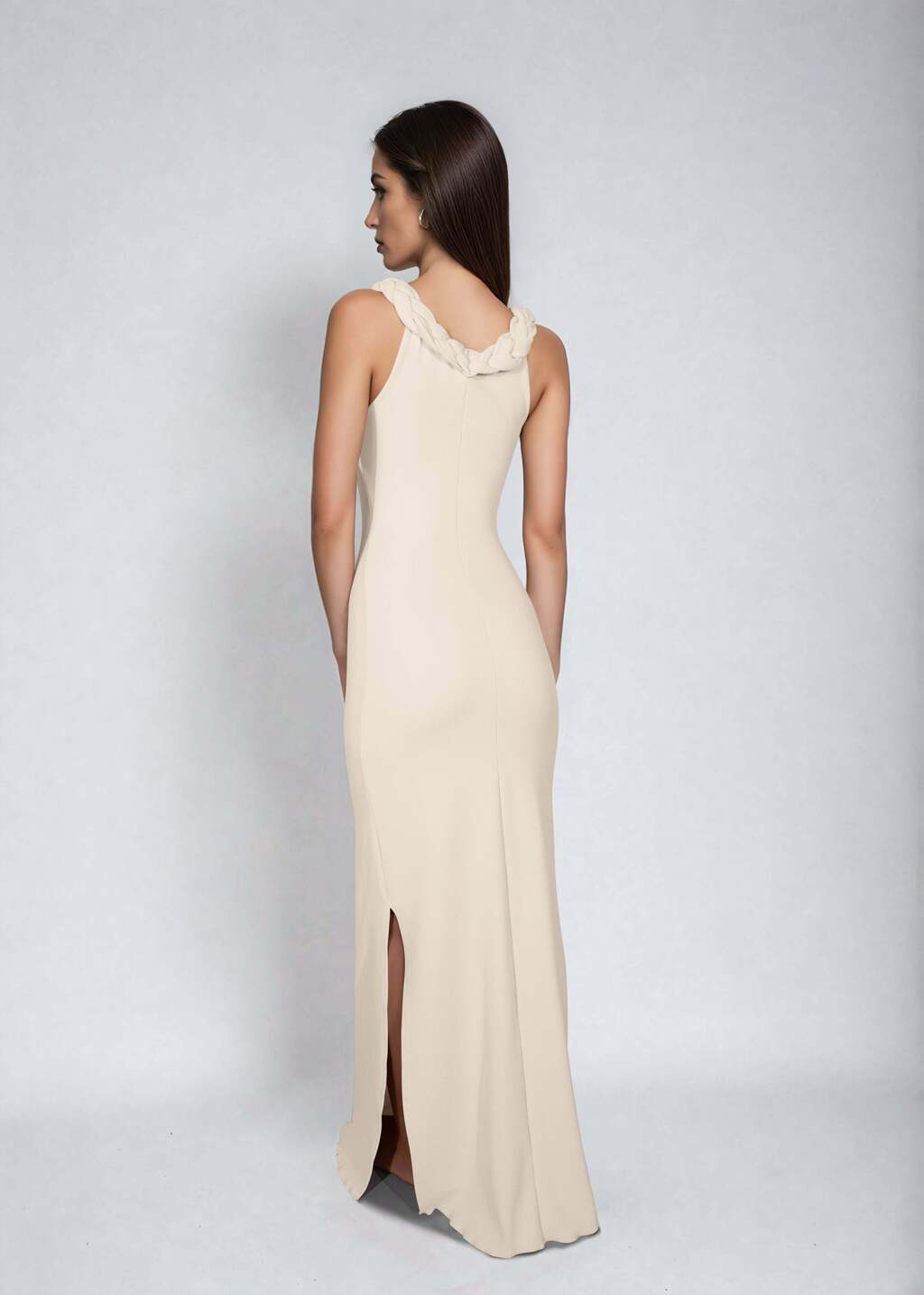 O Vestido Núria é uma peça extremamente elegante. Possui decote em V que valoriza o colo, realça a silhueta e fendas laterais que adicionam a dose perfeita de sensualidade e movimento. O destaque são as alças de tranças feitas à mão, conferindo um toque único e exclusivo. Sua versatilidade permite combinações com sandálias, saltos ou até mesmo tênis, adaptando-se a diferentes estilos. Uma peça essencial para quem busca um visual moderno e sofisticado.